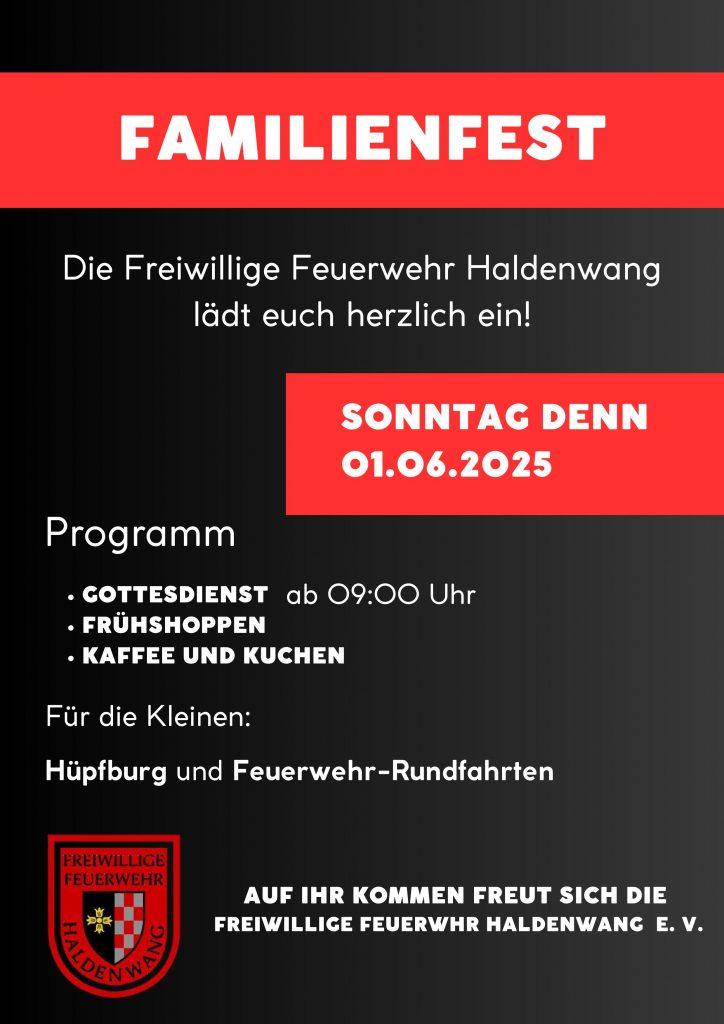 Nach dem Großen Erfolg im vergangenen Jahr und vielen interessierten Bürgern veranstaltet die Feuerwehr Haldenwang wieder ein Familienfest.